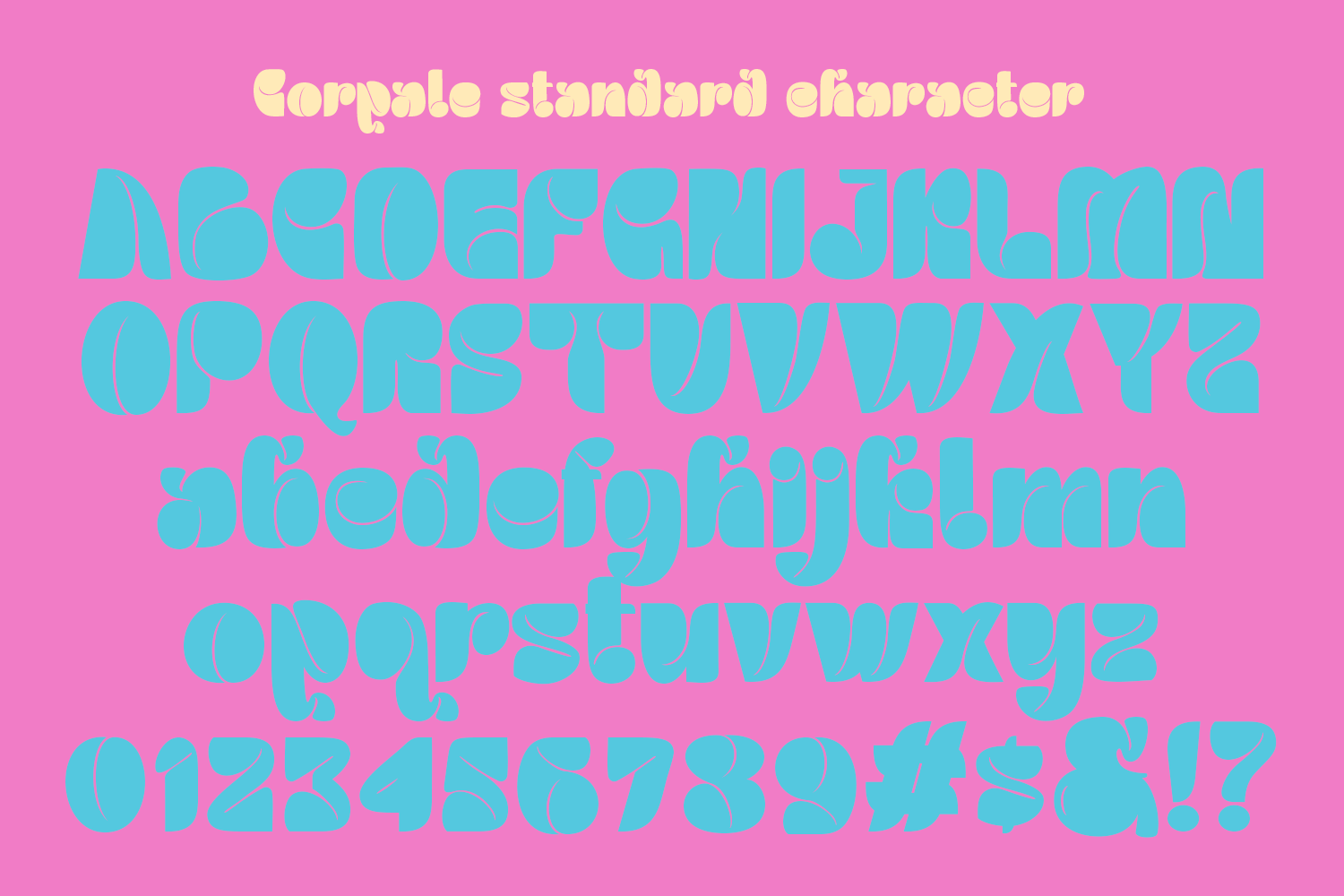 Introducing Corpale, the bubble curly font characterized by its bold and expressive style with unique, eye-catching letterforms. This design exudes a retro and creative vibe, making it ideal for titles or visual elements that need to capture attention. Perfect for a wide range of applications, including book titles, branding, product packaging, invitations, quotes, labels, posters, and logos, this font is a powerful choice for any creative endeavor.