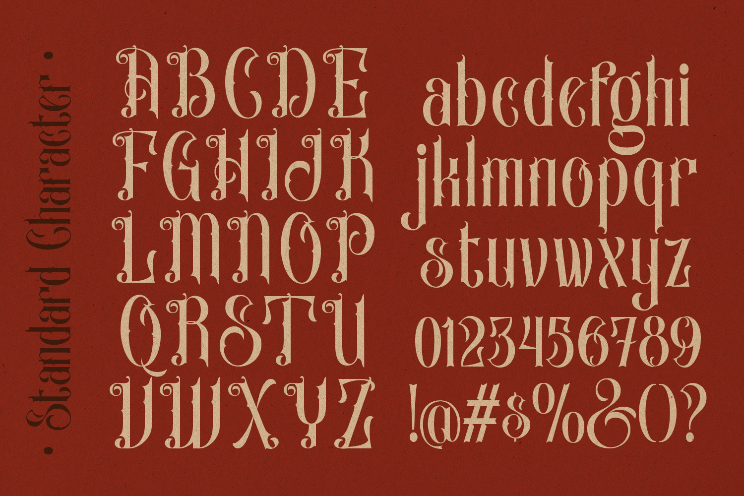 With its bold personality and distinctive identity, this font is ideal for headlines, logos, poster titles, premium packaging, and vintage or gothic-themed designs. The letterforms deliver strong visual impact while maintaining clarity, helping to elevate any composition with a sense of luxury, drama, and classic sophistication.