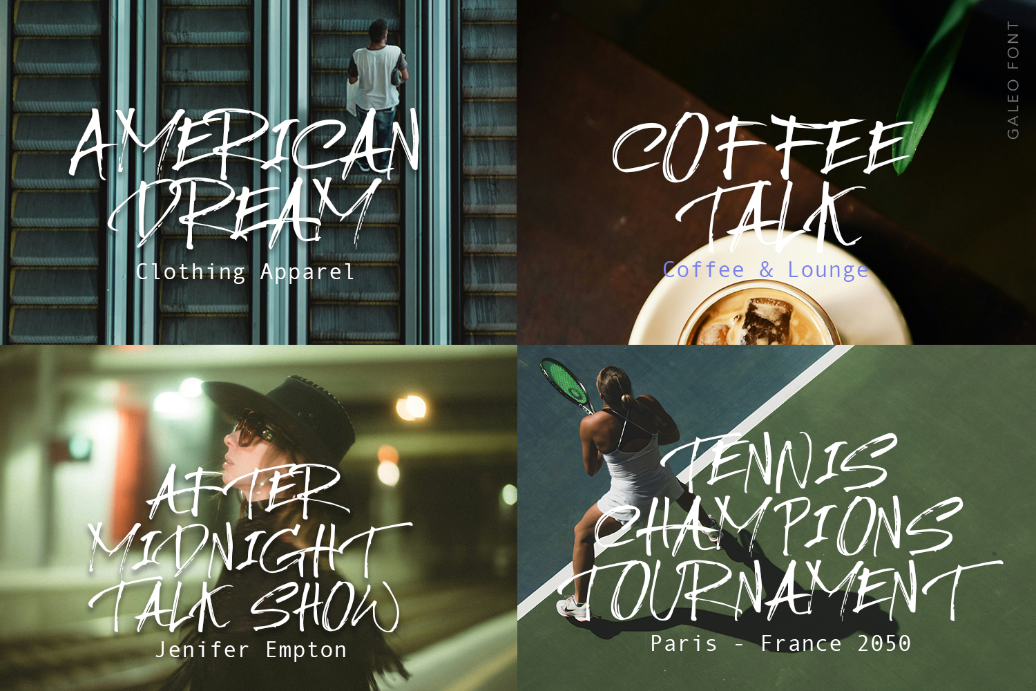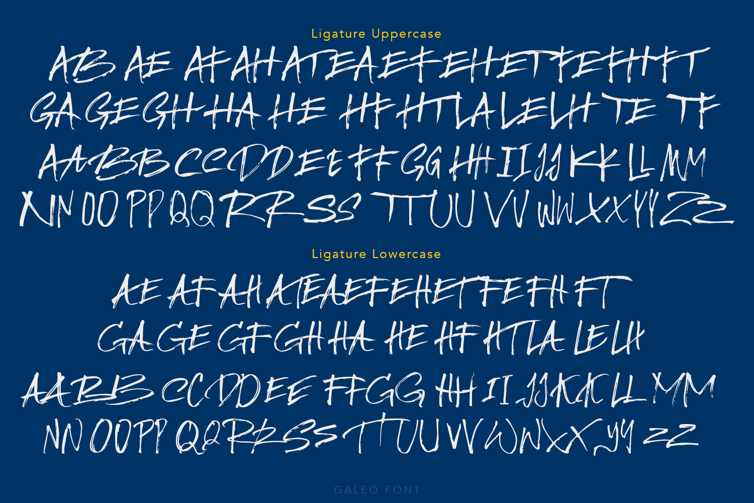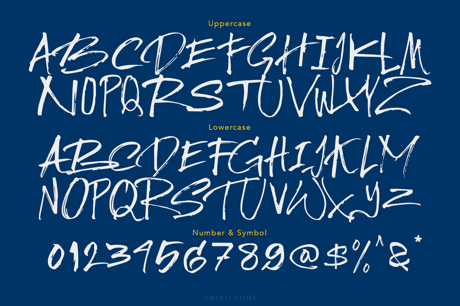 Galeo is a brush font contains 90+ ligatures comes with proud all caps font was hand drawn with a real brush marker. This font perfect for branding, posters, logos, fashion, headline and more.