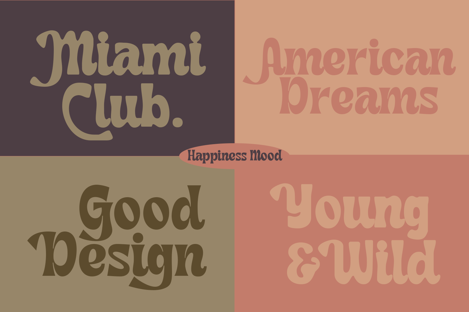 Happiness Mood Retro Fonts, comes with 2 styles clean and stamp style. Use this font for any branding, product packaging, invitation, quotes, t-shirt, label, poster, logo etc.