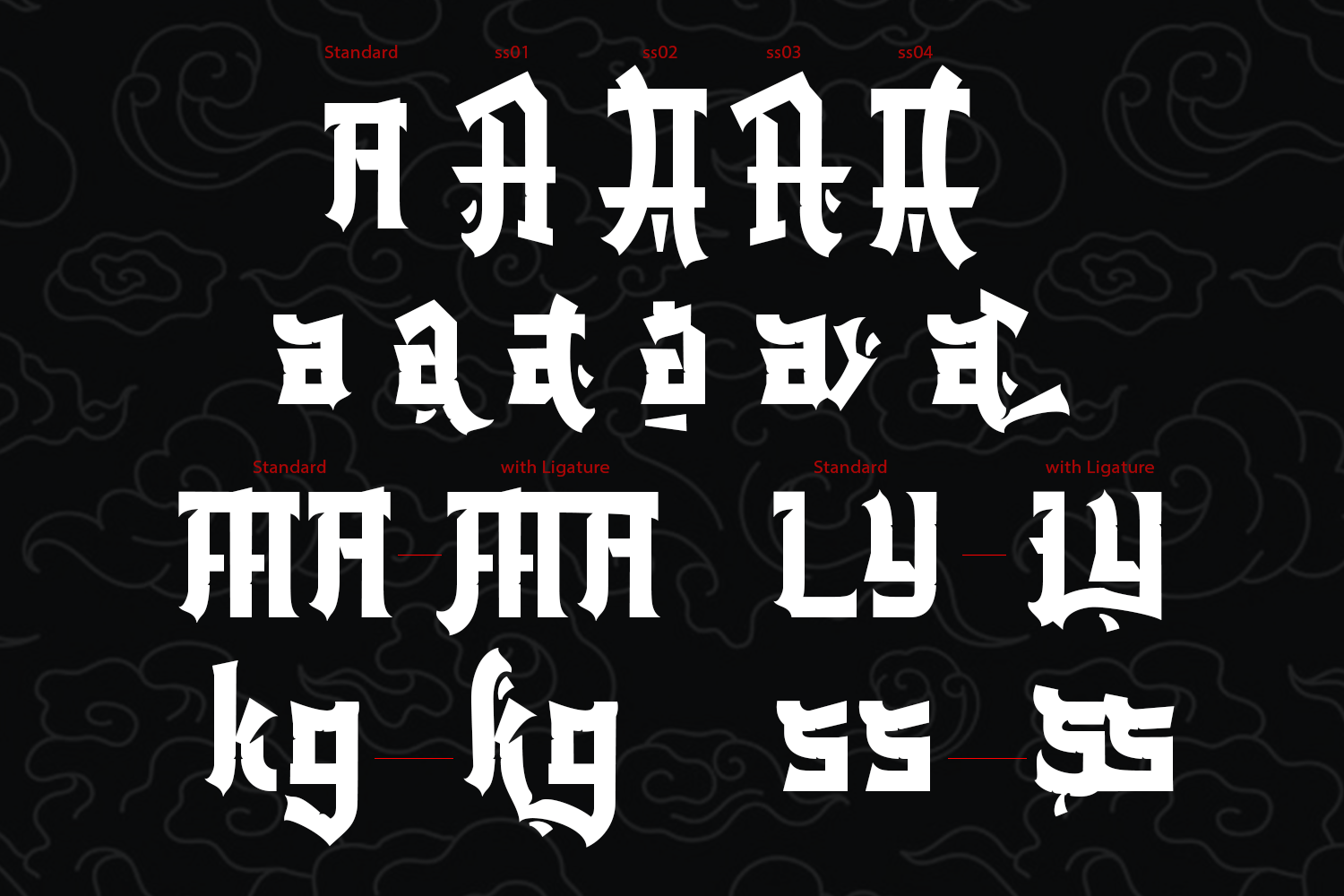 Introducing Miyukatsu, this font features a modern interpretation of Japanese letter aesthetics in the Latin alphabet—strong, artistic, and full of character. The bold lines and sharp angles are reminiscent of the stroke structure of kanji. The broken shapes and geometric constructions resemble the strong, controlled stroke rhythm of Japanese calligraphy. The dynamic thick-thin contrast gives the impression of brushstrokes in shodo.